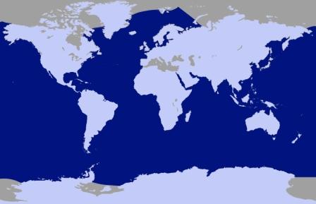 Humpback Whale Ecology Range: From tropical to temparate oceans. Migrations occur annually from breeding to feeding grounds and back again. Usual group size: just mother and calf, sometimes groups of 12-15, often larger groups in feeding areas Main Diet: Small fish and krill Local population: Unknown. | Global range of the Humpback Whale ![]() The dark blue areas indicate where Humpback Whales are likely to be found |
