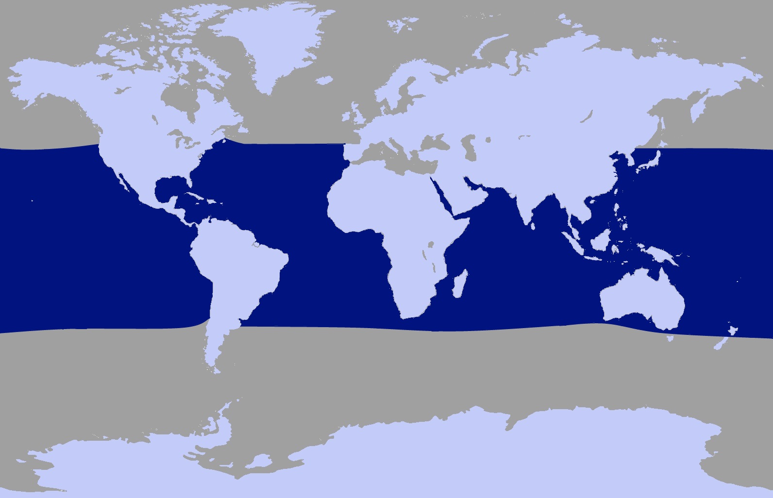 Dwarf Sperm Whales are likely to be found in the dark blue areas |