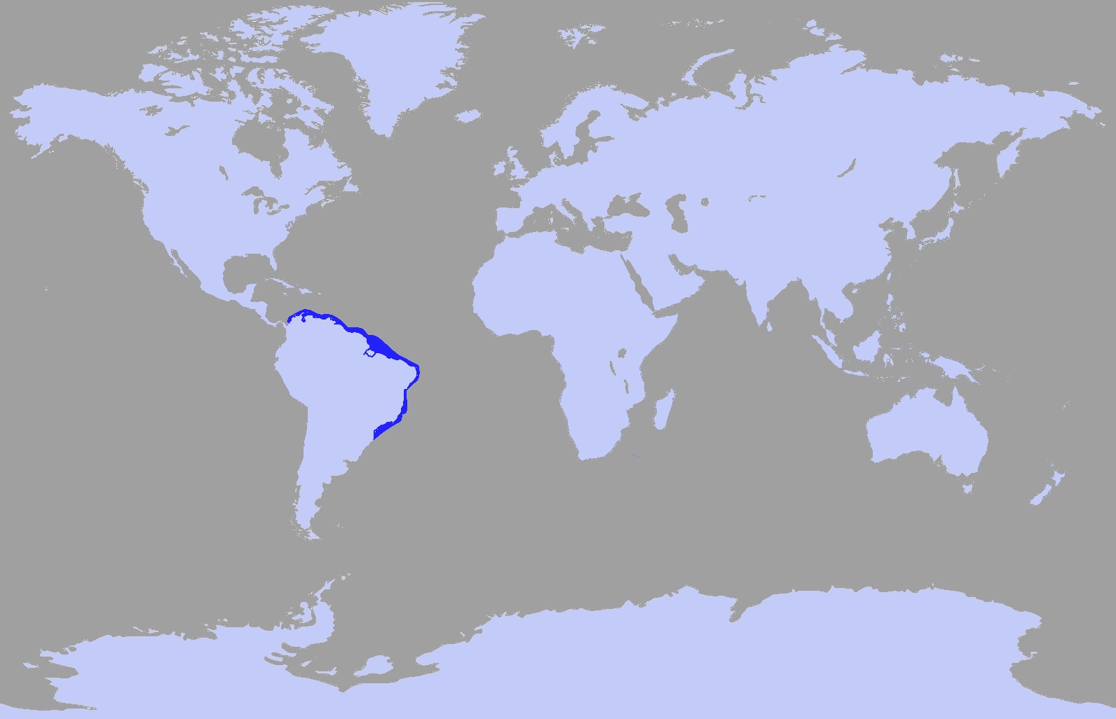 Guiana Dolphin Ecology Range: Nearshore waters around Central and South America from 15°N (Panama) to 27°S (South Brazil). Usual Habitat: Shallow, sheltered bays and estuaries Usual group size: Often in groups of up to 50 individuals. Main Diet: Schooling and bottom-dwelling fish, cephalopods (squid and octopus) and shrimp. Local population: Unknown | Global range of the Guiana Dolphin ![]() Dark blue areas indicate where Guiana Dolphins are likely to be found |
