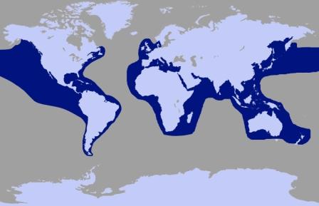 Risso's Dolphin Ecology Range: Tropical and temperate waters of both hemispheres Usual Habitat: Generally found in deep waters (generally depths of 400-1000m) just off the continental shelf Usual group size: 10-30 individuals, sometimes alone, in pairs or groups of 100s Main Diet: Squid, octopus, cuttlefish and krill Local population: Unknown | Global range of the risso's dolphin ![]() The dark blue areas indicate where Risso's Dolphins are likely to be found |