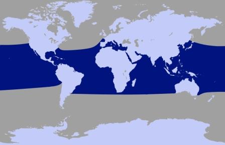 Rough-toothed Dolphin Ecology Range: Tropical and subtropical waters generally between 40ºN - 35ºS. Usual Habitat: Generally found in deep oceanic waters but in some areas, including Trinidad and Tobago, they are also found in shallow coastal waters. Usual group size: Generally close-knit groups of 10-20, but can be found in groups of 50 to 300 individuals. Main Diet: Cephalopods (such as squid and octopus) and fish (including large fish such as mahi-mahi). Local population: Unknown | Global range of the Rough-toothed Dolphin ![]() Dark blue areas indicate where Rough-toothed Dolphins are likely to be found |